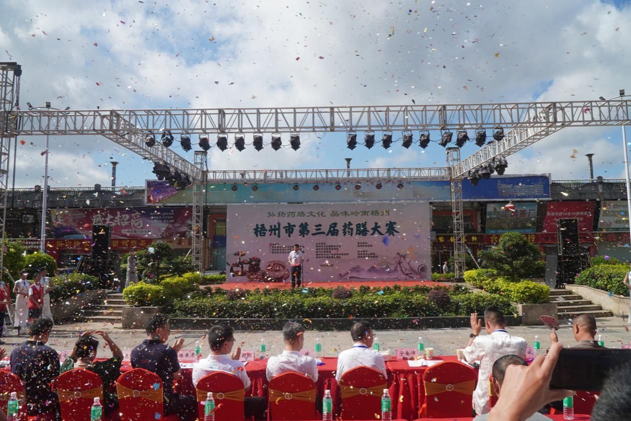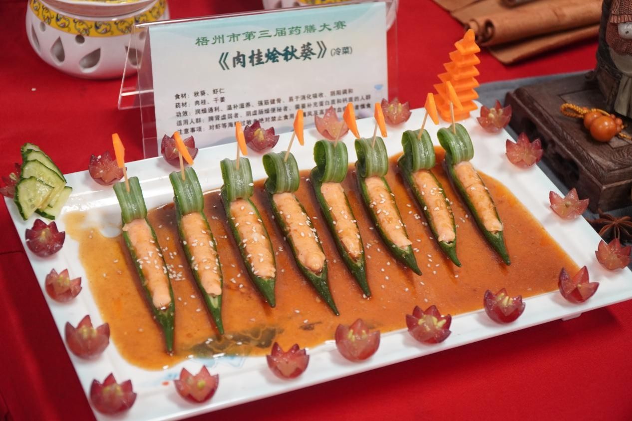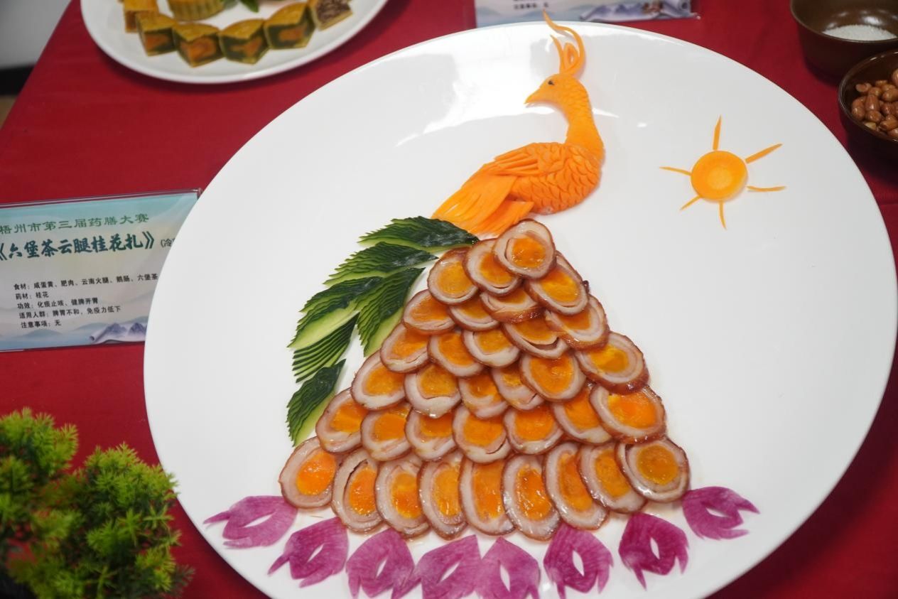 梧州市相关部门领导高度重视,25支参赛队伍、150多位选手携百余份匠心作品同台竞技。从选材到烹制,选手们以特色中药材搭配本土食材,将“药材入膳”的健康理念融入一道道色香味俱全的佳肴中,展现梧州作为“岭南药膳之乡”的深厚底蕴。