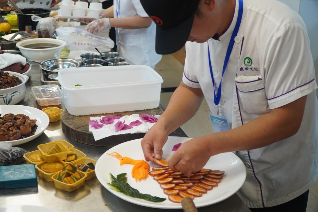 经过各队参赛选手精心的制作,一道道各具特色的药膳纷纷呈现在大家的视线内,评委和裁判们认真严格地对各家美食进行品鉴。