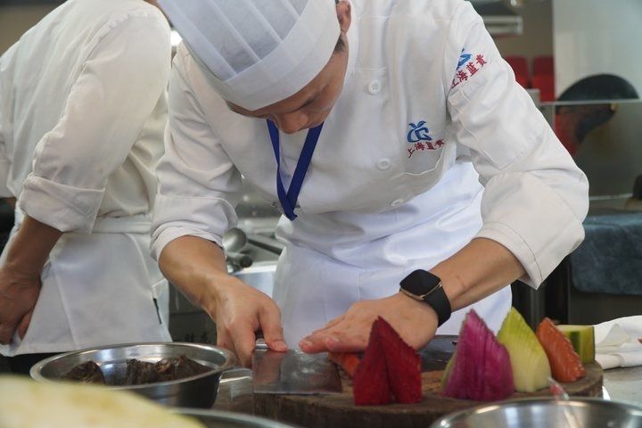 赛场上,选手们身着统一工装,在灶台间有条不紊地煎、炒、炖、蒸,将各种各样的中药药材与食材巧妙结合,既有传统药膳的醇厚底蕴,又不乏创意十足的现代烹饪技法。各职能小组全程严格监管,从食材安全到制作流程,确保赛事专业性与规范性。
