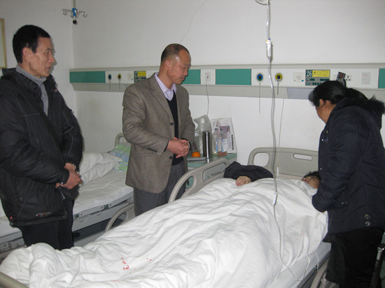 学院委派学工处领导到医院看望周跳同学