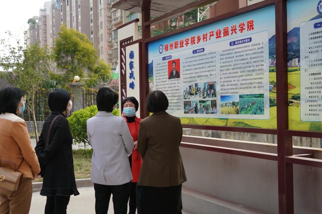 梧州日报社一行在学校领导的陪同下实地考察了学校清莲园、初心馆、乡村产业振兴学院、东融产业发展研究院等地。