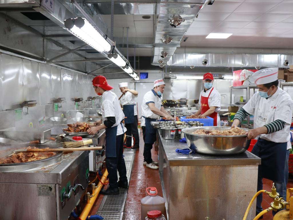 后勤服务管理中心吕广新介绍,对于进入厨房的人也是有严格要求的,从接到通知到3月5日开学之前,学校为食堂员工建立健康信息台账,要求每天测量登记体温、汇报行踪、来往史等。工作必须佩戴口罩、手套,保证食品健康卫生。