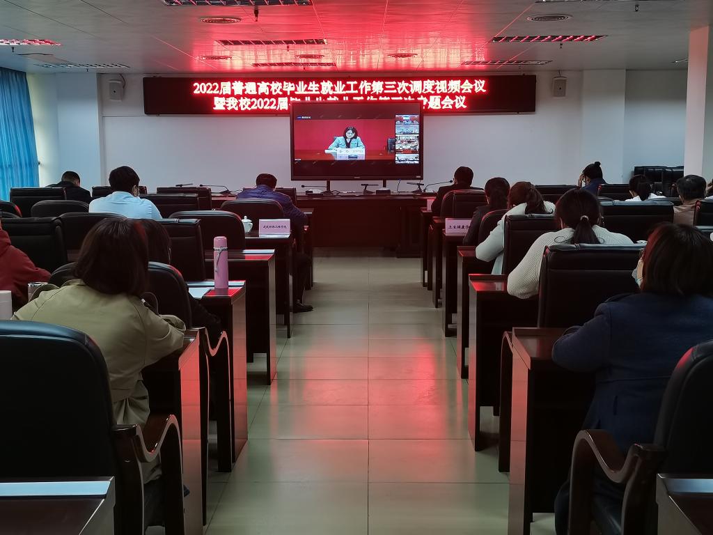 学校副校长梁恩出席线上会议,实习就业指导中心、教务处、学工处(保卫处)和二级学院院长、就业专干、全体毕业班辅导员参加会议。