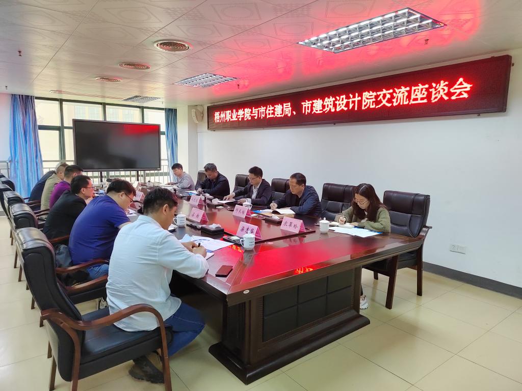 会上梁恩副校长就人才培养、校企合作方面介绍了建筑环保学院的办学情况,以及BIM产业学院建设情况。并且与市住建局、市建筑设计院就职工继续教育配培训,梧州市建筑行业企业人才、用工需求进行了深入的交流。共同探讨成立校外实习基地、科研技术协作和联合攻关项目,通过实际项目开展深入合作。切实提高行业专业技术水平,更好的服务企业发展,为2022届毕业生提供更多就业岗位信息。