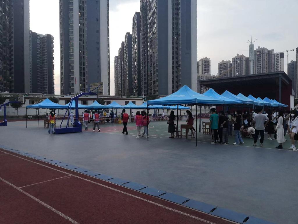 本轮全员核酸检测设置行政楼大厅、风雨球馆、西校区以及一心教学点共四个核酸采样点。各个核酸采样点师生积极配合,提前扫码录入个人信息、带好口罩、一米线有序排队,经过4小时,当晚全部完成一万多师生的核酸检测。