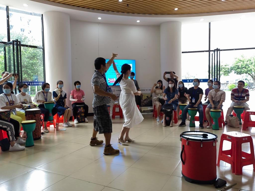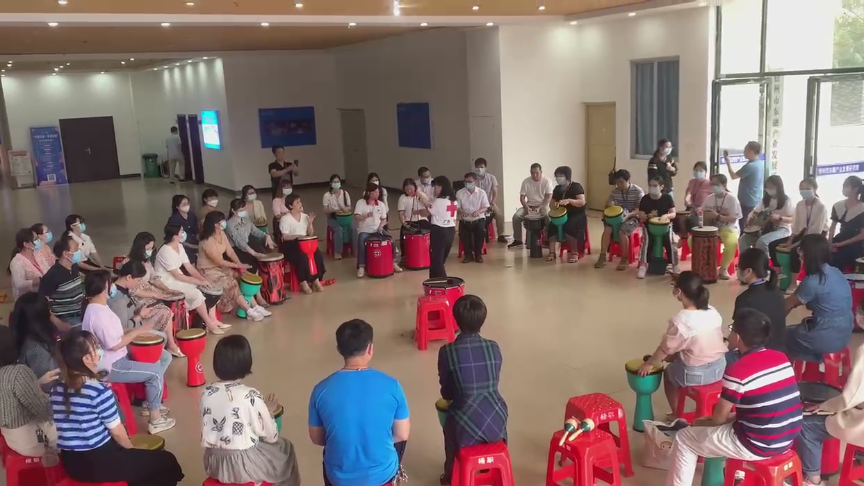 活动中还有别开生面的“鼓圈”环节。大家随着时而清脆、时而激昂的鼓节奏,通过敲击乐器,在互动中融合,增加团队凝聚力,全场气氛热烈。
