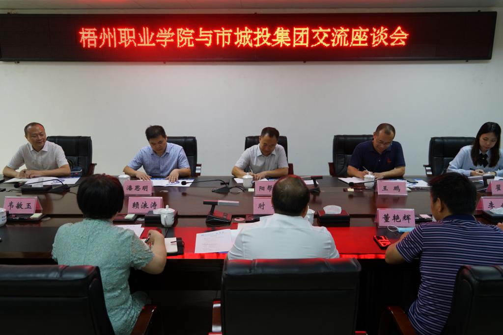 市城投集团阳帮元书记介绍了近年来城投集团的发展情况,并表示,市城投集团将一如既往地支持学院教育事业的发展,为梧州教育发展贡献城投力量,希望以此次交流为契机,期待双方在未来创新发展、项目共建、资源共享等方面开展更深层次的交流合作。