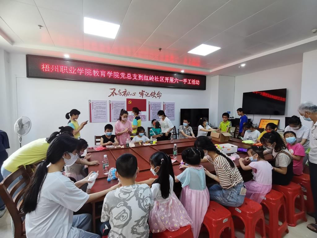在“六一”国际儿童节到来之际,为了让小朋友们度过一个难忘、快乐、有意义的“六一”儿童节,6月1日早上,学校组织教育学院党总支组织党员教师及学生积极分子一行8人,来到红岭社区开展了“喜迎二十大,同心护未来”手工制作主题活动。