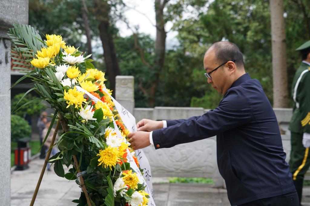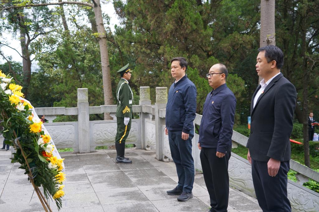 4月10日,beat365英国官网网站领导班子成员,各基层党组织、相关部门负责人、党员代表、团员代表在梧州珠山革命烈士陵园举行“缅怀革命先烈,赓续红色精神”2023年清明祭扫烈士墓活动,活动由李伟副院长主持。