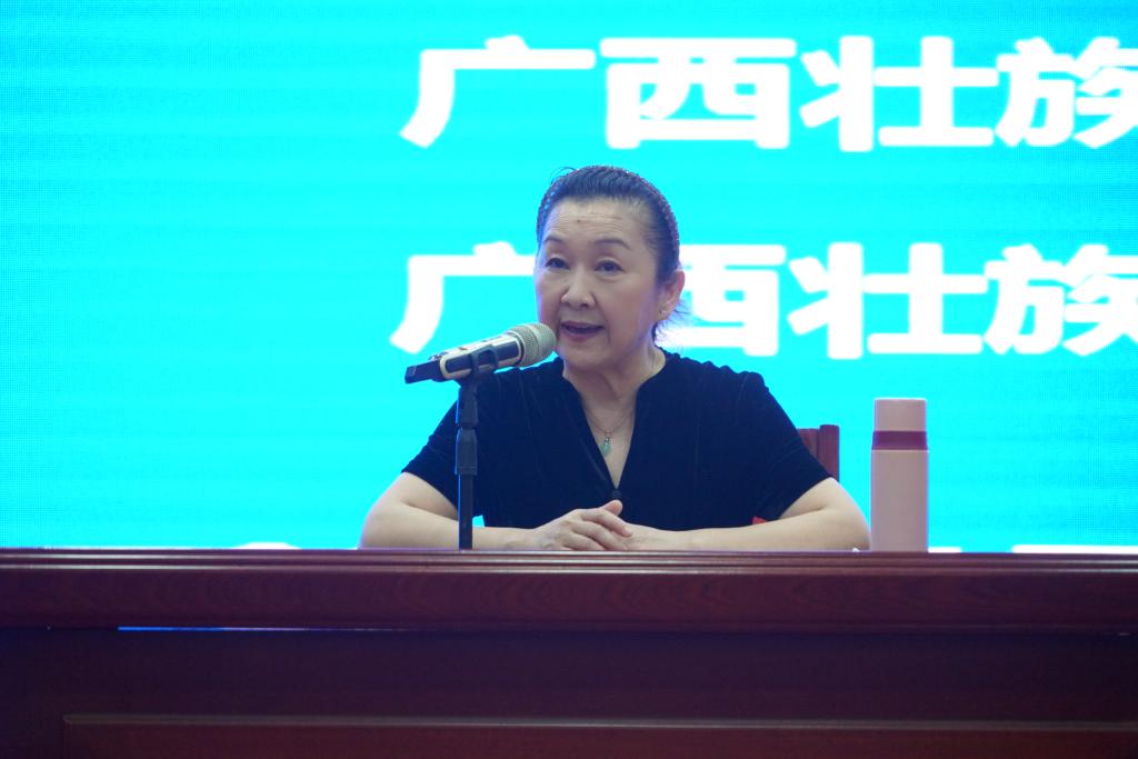 随后,龙倩院长就戏剧文艺工作向大家介绍了近十年来广西戏剧发展情况。她表示,了解戏剧发展的历史是更好的落实文艺发展工作的前提,也是学习贯彻党的二十大精神文艺工作创作的重中之重。对顺应时代的发展,使其富有现代意义,丰富戏剧文艺工作成果具有重要意义。提高政治站位,注重作品选题,加大乡村题材的创编,积极参加各类演出、比赛和群众文化活动,进一步提升人才艺术素养,为广西文化艺术事业创造出更多优质的艺术精品。