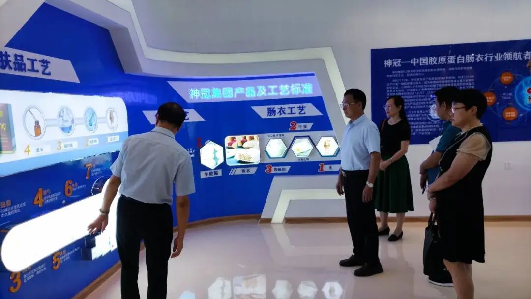 6月28日,beat365英国官网网站校长陈森英率队走访广西神冠胶原生物集团有限公司。广西神冠胶原生物集团有限公司温锦培董事等人对学院一行表示热烈欢迎,陈校长一行参观了广西神冠胶原生物集团有限公司展区,了解该公司的胶原蛋白介绍、医疗器械牛胶原选料标准、产品及工艺标准、胶原蛋白应用领域及应用成果、厂区布置、发展历程等。