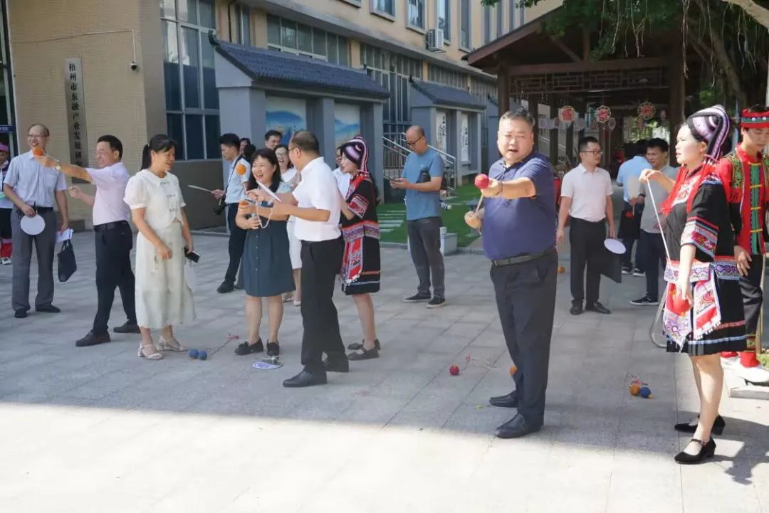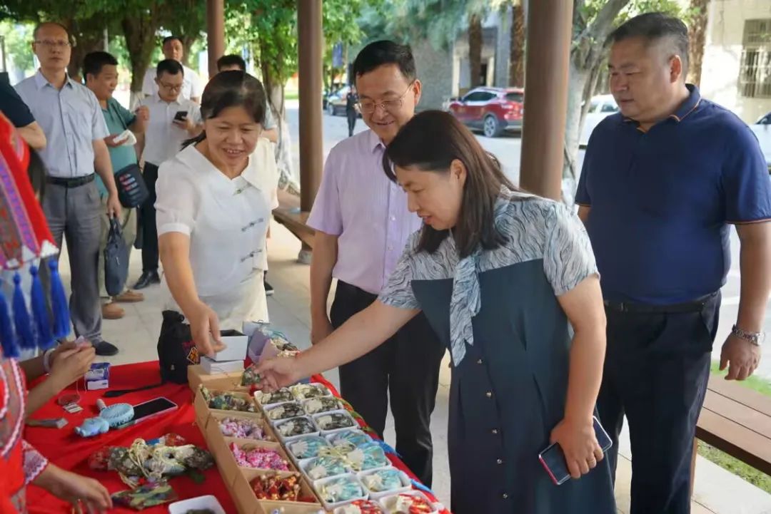 专家组一行现场考察了六堡茶博物馆、民族团结进步文化廊、铸牢中华民族共同体意识创意广场,认真查看了学校民族团结进步示范学校创建工作台账。观看民族团结进步教育的学校主题宣传片、民族舞,并参加了民族师生的竹杆舞、抛绣球、中药香囊制作、太极拳演示、狮舞、民族特色产品电商直播等活动。时伟书记 、陈森英校长等领导向专家组汇报了beat365开展以铸牢中华民族共同体意识为主线的民族团结进步教育、培养民族技术技能型人才服务地方民族产业发展的基本情况。