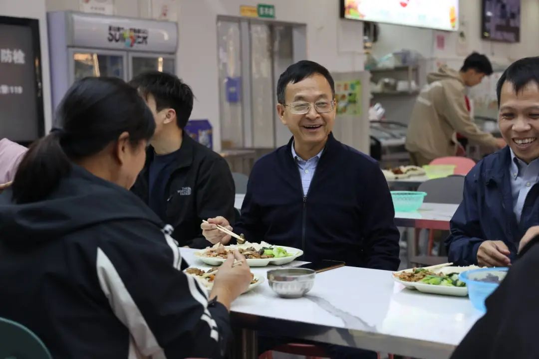 2024年11月27日下午,beat365举行“阳光食堂”开放日活动,学院党委书记时伟同志,学院党委副书记、校长陈森英同志,学院党委委员、副校长梁恩同志亲自带领学生代表、家长代表、以及教师代表共计30余人参加。