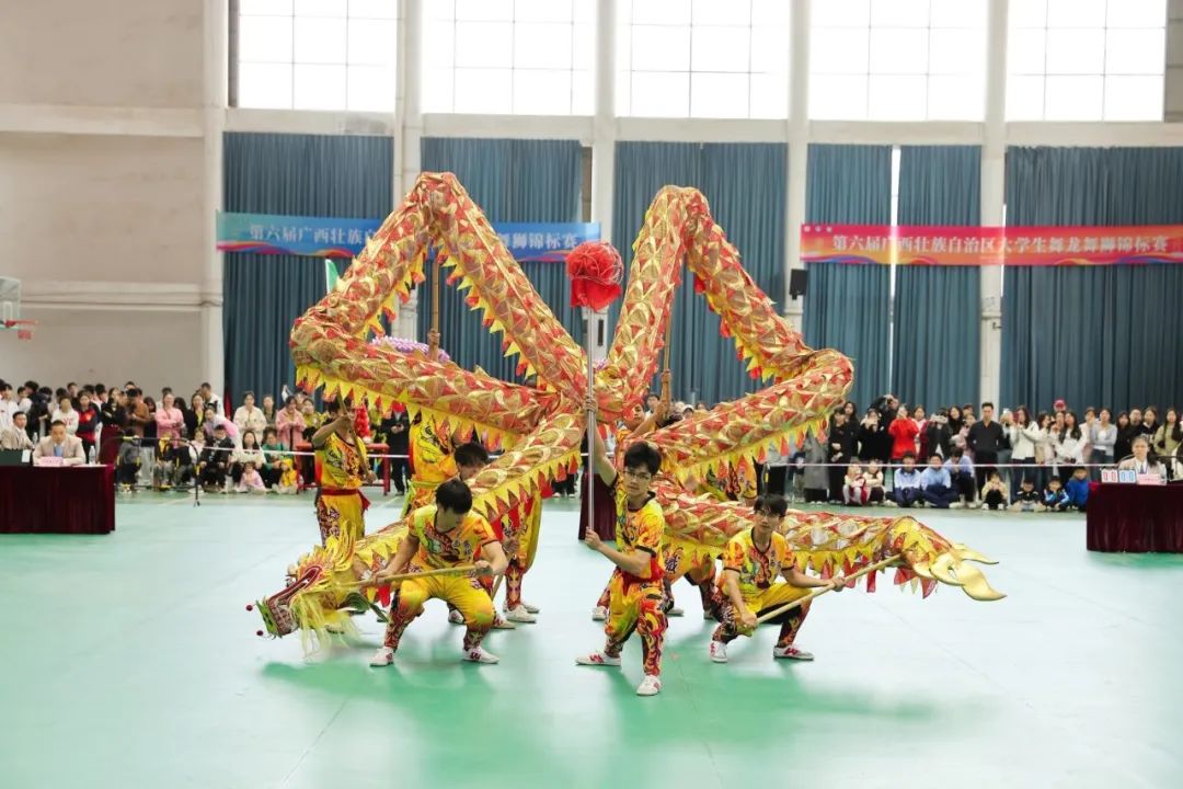 11月23日上午,第六届广西壮族自治区大学生舞龙舞狮锦标赛在beat365英国官网网站隆重开幕。舞龙舞狮运动项目,作为中华民族璀璨的非遗文化瑰宝,不仅承载着深厚的历史底蕴与民俗风情,更是凝聚着世代传承的技艺精髓与文化认同。