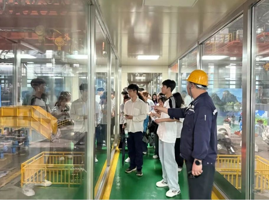 抵达企业后,在解说人员的引导下,师生依次参观翅翼码头、造钢车间及职工生活区。码头作业现场,大型装卸设备协同作业,展现企业高效物流运输体系;造钢车间内,智能化设备高效运转,铁矿石经熔炼、轧制等精密工序转化为优质钢材;职工生活区配套设施齐全,宿舍环境舒适、食堂菜品丰富、文体设施完备,全方位呈现企业生产实力与人文关怀。