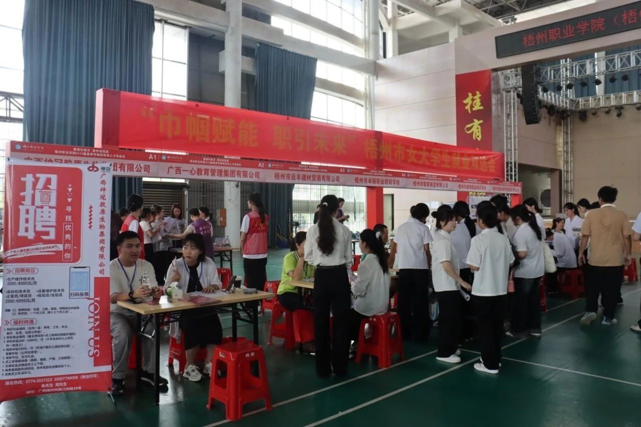 当天上午,梧州市女大学生就业双选会学校风雨球场同步举行。女企业家协会会员企业进行了企业宣讲和岗位对接,梧州市消防支队还开展了消防安全装备展示和体验活动,为即将毕业的女大学生们提供了宝贵的就业机会和安全知识普及。
