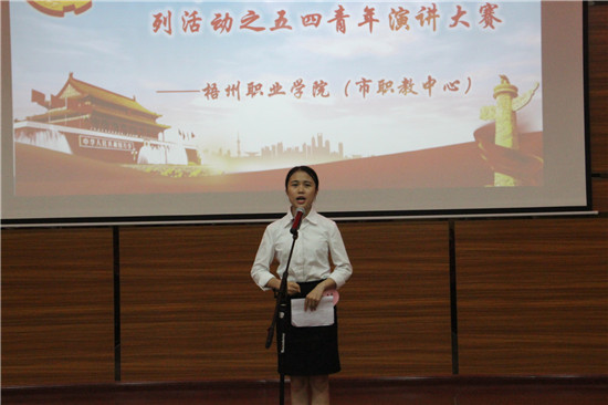 5月10日,“五四”青年演讲大赛开赛,经过激烈角逐,卫职部杜晓莹同学荣获比赛第一名,建筑系谭彩丰、一职中覃樱婷获得比赛第二名。