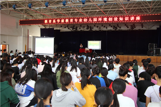 11月17日下午,教育系举办幼儿园环境创设知识讲座。梧州市第一幼儿园副园长封云应邀讲授幼儿园环境创设相关专业理论知识和专业技能知识。教育系主任姚冰、副主任余迅雷出席,教育系全体师生听取讲座。
