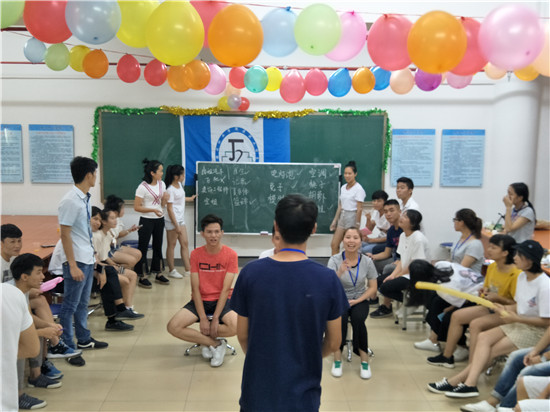 为更进一步提高系部学生会成员的凝聚力,在主席团的带领下,建筑工程系学生会全体成员齐聚综合楼十楼建筑工程系制图实训室,开展了“串名字”、“你说我猜”、“杯水传情”等游戏活动,场面十分活跃,期间欢笑声不断。在活动过程中,游戏失败的成员要在指压板上跳绳及现场表演节目,这一环节更为活动增添了无限的乐趣。