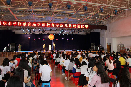6月18日上午,教育系在学院第一食堂五楼举行学前教育专业儿歌朗诵比赛。