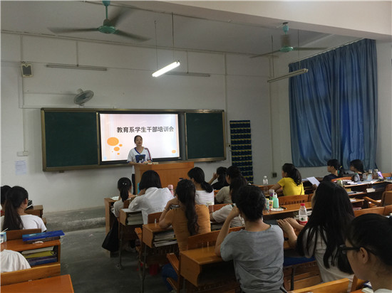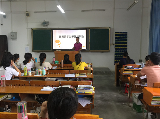 6月14日下午,教育系开展了学生干部培训活动。系学生会干部、系分团委干部、各班班干参加了培训。系部副主任余迅雷担任培训主讲,辅导员李琳老师主持了培训。