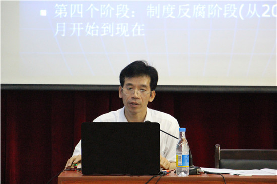 7日,在第一教学楼118教室,一段“学生冒领助学金的校园案件”视频引发同学们对腐败与廉洁的深刻思考。接着,杨静锦结合一系列真实案例,给同学们分析了党的十八大以来腐败与反腐的形势,用真实准确的数据让同学们认识到腐败的危害性和廉洁的重要性,也让同学们体会到了一个人在社会中诚信的重要性。