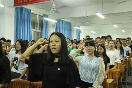 5月18日,为纪念建团95周年暨“五四”运动98周年,进一步加强团员意识教育,学院团委举行了2017年新团员集中入团宣誓仪式。学院组织部副部长关广荣、学院团委副书记银翠姣出席了仪式。院团委及各系部团干、新老团员共130余人参加了仪式。