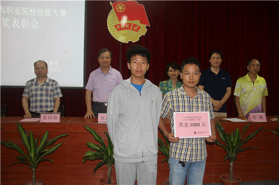 最后,由覃洪斌教授和黎柳筠经理为获奖的师生颁奖。