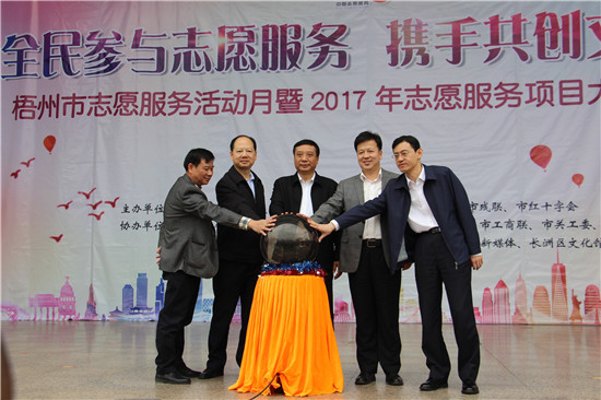 参会领导宣布梧州市志愿服务活动月暨2017年志愿服务项目大赛正式开幕