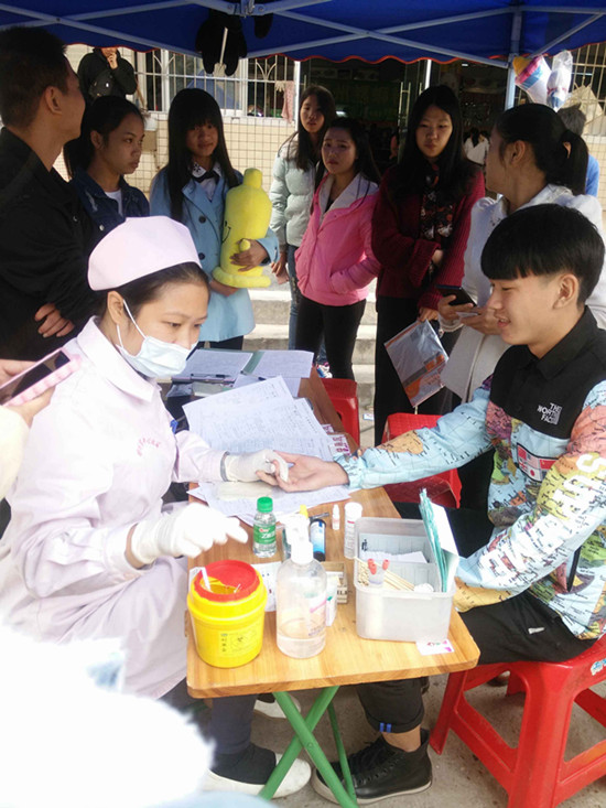 为提高梧州市血库的献血量,11月30日,beat365青协献血服务队配合梧州市中心血站在beat365进行校园采血活动,吸引了广大师生的踊跃参与。beat365青协献血服务分队积极响应,在校园分发传单、宣传献血知识,指导献血成员填写表格,帮助护士指导献血成员到指定的位置献血等。献血活动在志愿者的协助下井然有序地进行,志愿者们细心的服务再次掀起了无偿献血爱心的热潮,为寒冬带来了无尽温暖。