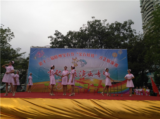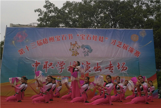 本场演出为第十三届梧州宝石节宝石娃娃才艺展演的梧州市职教中心专场。 11个节目均来自市职教中心的各个中职学校。整台演出一个半小时,共参与演职人员148人。节目精彩纷呈,内容丰富。一职中的舞蹈《送你一朵玫瑰花》精彩开场,赢得观众一片喝彩;卫校的《天使之路》展示了专业礼仪,温暖人心,扣人心弦。另外还有歌曲、小品、朗诵等多种节目形式,精彩的演出赢得了宝石节各方来客的欣赏和好评。
