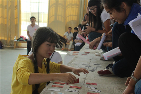 学生会拓展活动分为“接彩球”、“翻扑克牌”、“驿站传书”三个环节,分组进行比赛。通过比拼,成员们都迅速融入到整个集体,大家脸上都洋溢着笑容,在享受比赛乐趣的同时也提高了自身素质,收获了友谊。