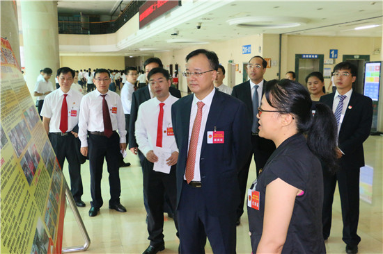 会前,在全市各单位共青团的成果展览中,市委书记黄俊华听取了学院团委副书记银翠姣解说学院共青团六年以来的成果汇报,对学院共青团取得的成绩进行了肯定和鼓励。