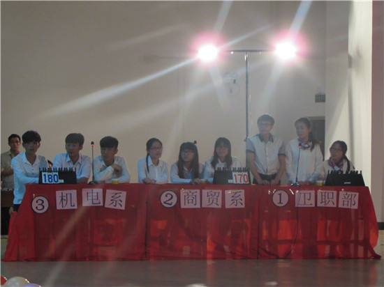 本次竞赛分初赛和决赛两个阶段,历时一个多月。机电系参赛队由大一学生徐径茵、谢旺生、谢展鸿三位选手组成。三位选手凭借扎实的知识功底和机智的临场反应一路过关斩将闯入决赛。决赛历经必答题、风险抢答题、图片题、音乐题、影片题等五个环节的比拼。经过激烈的角逐,机电系参赛队以压倒性的优势折桂,为机电系争得了荣誉。