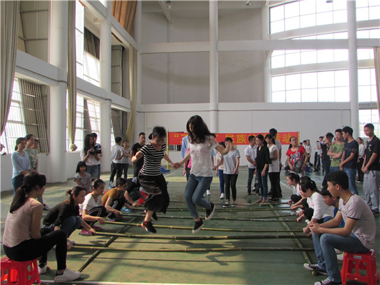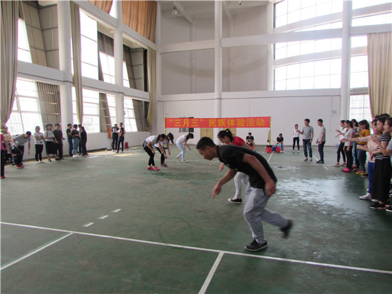 农历三月三是壮族人民的传统节日,为弘扬中华民族传统文化,把广西“三月三”民族文化引进校园。学院团委以此为契机,于4月16日上午在学校风雨球场及第二食堂开展了跳竹竿、滚铁环、包饺子活动。来自学院各系部的学生代表共250多名成员相聚一堂,一起欢庆广西这个特有的节日。
