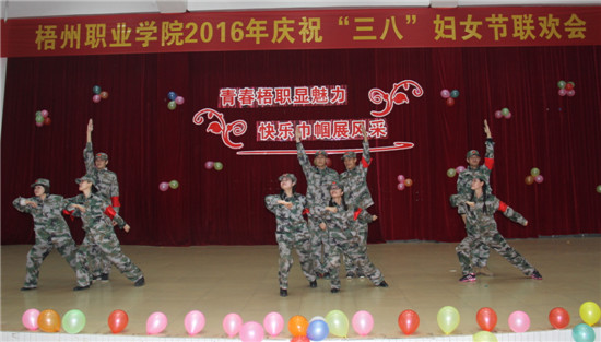 “无私奉献,我们把爱洒向这块开垦的土壤;脚踏实地,我们用心续写梧职新篇章。告诉未来,有一种骄傲,是今生无悔的选择;有一种精神,是我们执着的追求。这,就是梧职教师的风采;这,就是梧职的巾帼形象。”妇女代表们激情满怀的朗诵,在报告厅里回荡。这是学院庆“三八”系列活动的另一重头戏妇女联欢会上激动人心的一幕。