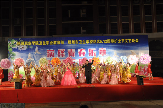 5月8日晚,学院卫生职教部和梧州市卫生学校联手举办以“演绎青春乐章,共圆天使梦想”为主题的庆祝国际护士节文艺晚会。学院党委书记张凌贞、学院院长聂振传应邀出席观看演出。