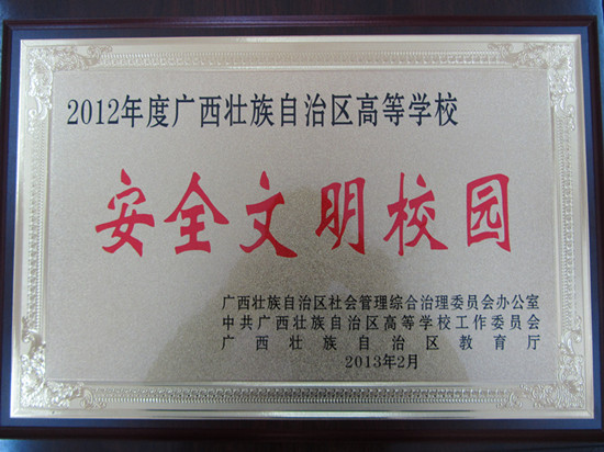 学院的安全文明校园荣誉牌匾