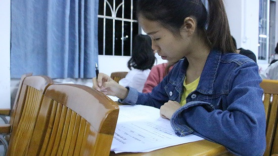 学生团员认真答题
