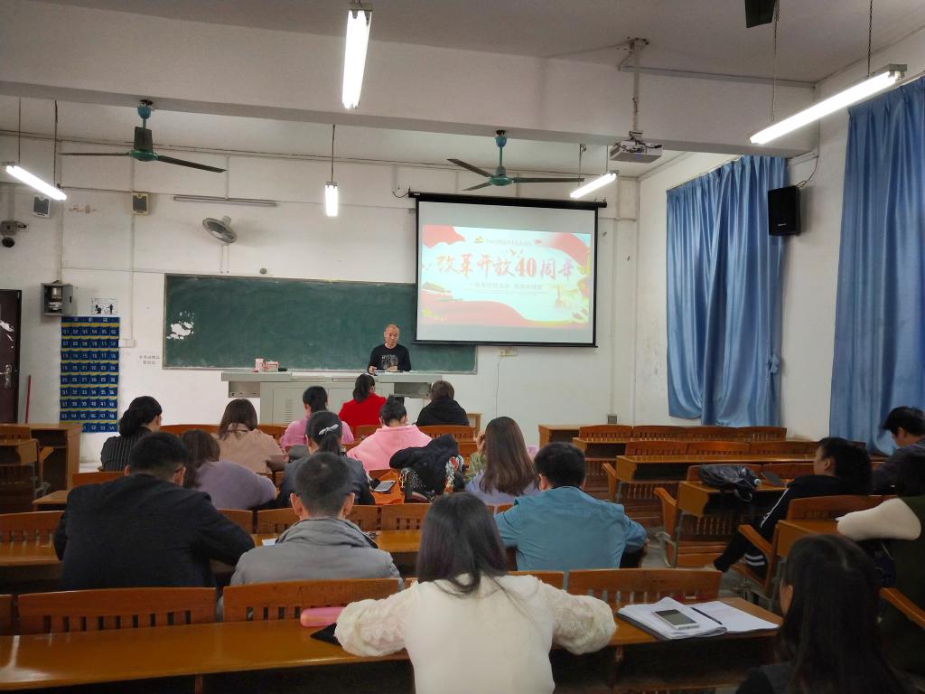 学习会上,欧少冠指出,改革开放40周年来,在中国共产党的领导下。中国人民艰苦奋斗,顽强拼搏,书写了国家和民族快速发展的壮丽史诗,国家发生了翻天覆地的变化。作为一名教师,我们要立足当前岗位,弘扬改革开放精神,坚定理想信念,强化担当作为,敢于开拓创新,认真落实立德树人的根本任务,努力培养合格的社会主义事业的接班人,为学院的发展建设做出自己的贡献,为实现中华民族伟大复兴的中国梦添砖加瓦。