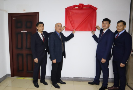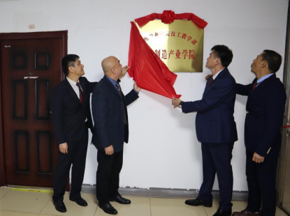 随后,技工教学部党委书记彭亦雄、技工教学部党委副书记、部长梁志华、广西华熙教育科技有限公司董事长、技工教学部智能制造产业学院副院长陈炳华、产业学院督导王柏强共同为智能制造产业学院揭牌。
