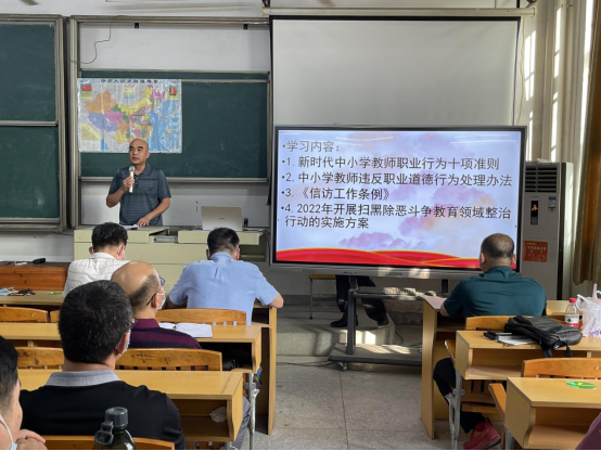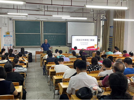 6月8日16:20,技工教学部党委书记带领全体教职工在第二教学楼一楼阶梯教室再次对《信访工作条例》进行了深入的解读。