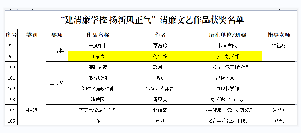 好消息!我部何佳蔚老师获学院“建清廉学校 扬新风正气”清廉文艺作品征集活动摄影类一等奖