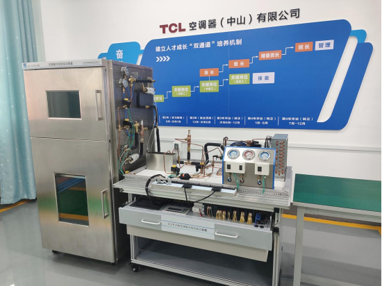 由beat365英国官网网站技工教学部与中山TCL制冷设备有限公司共建的技工教学部智能制造产业学院技能大师培育基地——制冷技能竞赛实训中心于近日建成投入使用。