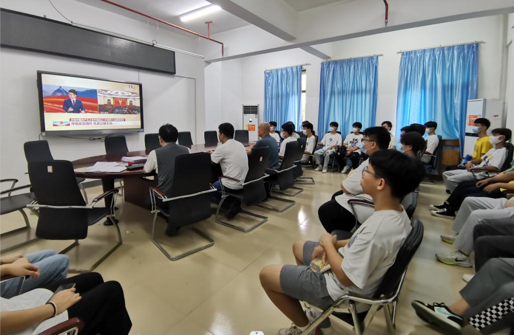 2022年5月10日上午10点,技工教学部组织师生观看庆祝中国共产主义青年团成立100周年大会直播。在行政楼会议室,技工教学部党委书记彭亦雄、部长梁志华、学生科科长许小军、团委干事何佳蔚以及团员学生代表一同集中收看。其他学生因地制宜通过多种渠道收听收看。据统计,技工教学部累计1500名学生观看了直播。