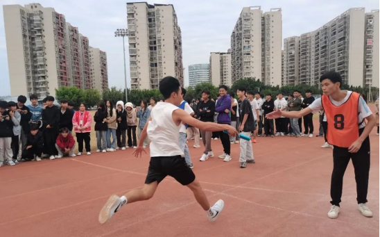 跑道上,运动员们蓄势以待,斗志昂扬。赛场外,各班拉拉队员摇旗呐喊,鼓劲加油。小小的接力棒传递的是勇气和力量,更是团队的精神和默契,运动员们出色地完成了速度与毅力的接力。