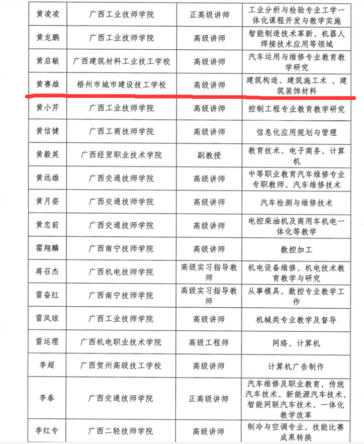 技工教学部黄赛雄、严镇、黄贵强有三名教师入选广西技工教育教科研专家库!