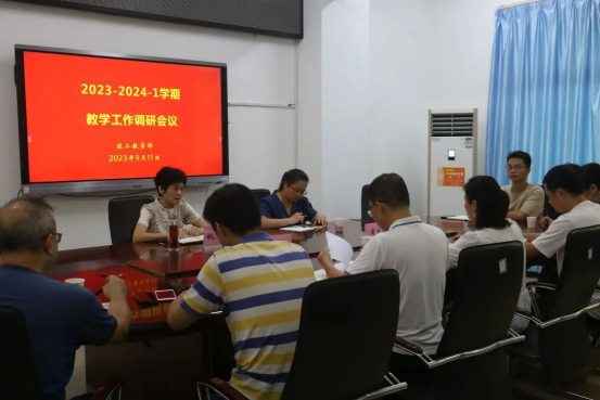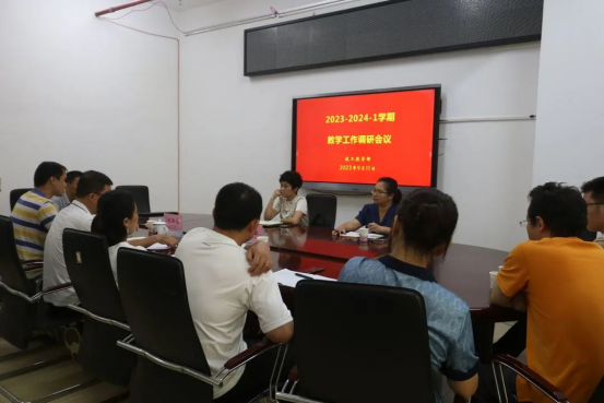 2023年9月11日上午,学院副校长姚冰一行到技工教学部对2023年秋季学期教学工作进行调研。教学科研处副处长黄湘寒等老师陪同,技工教学部领导班子、教务科成员以及教研室主任等人员参加会议。