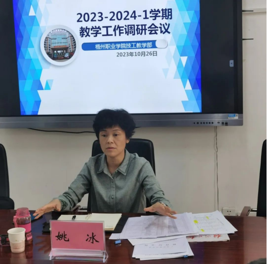 姚冰副校长认真听取了汇报,对技工教学部所开展工作取得的成绩给予了肯定,同时也为技能比赛的承办、申报新专业、企业课程的开展、学生实习工作等方面给予了很多建议。最后姚冰副校长表示,新专业发展要以学生就业面对市场的需求为要点,学生实习与就业要立足于本地产业和经济发展需求,要对本地产业用工提供好技工人才输送,校级技能比赛要精准对接自治区级、国家级的技能竞赛。
