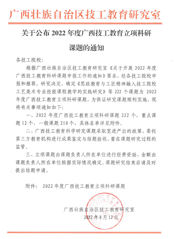 卿捷老师的课题获自治区技工教育研究室立项!